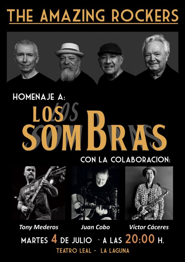 THE AMAZING ROCKERS es un grupo formado por los músicos tinerfeños Pepe Rancel, Fernando Foronda, Paco Urbano, Manolo Santana, Juan Cobo, Tony Mederos y Víctor Cáceres, que rendirá tributo, en concierto, al afamado grupo tinerfeño Los Sombras que, entre los años 65 a 70, jugó un papel esencial en Canarias, como fiel reflejo y consecuencia de la transformación juvenil promovida e inspirada por la imparable pujanza de la música recreada, durante la época de los 60, por las bandas de rock, soul y rythm and blues de Gran Bretaña, Irlanda y los Estados Unidos.