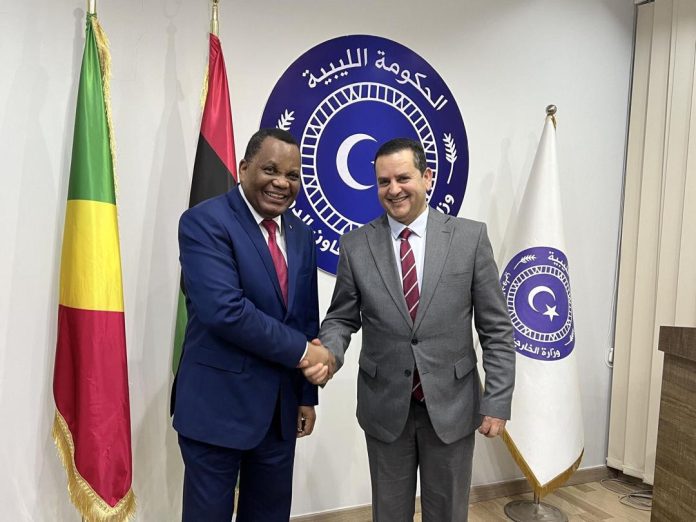 Abdul Hadi Al-Hawaij, Minister of Foreign Affairs of the Libyan government of Benhgazi met with the African Union delegation led by the Minister of Foreign Affairs of the Republic of Congo Brazzaville, «Jean-Claude Gakosso».