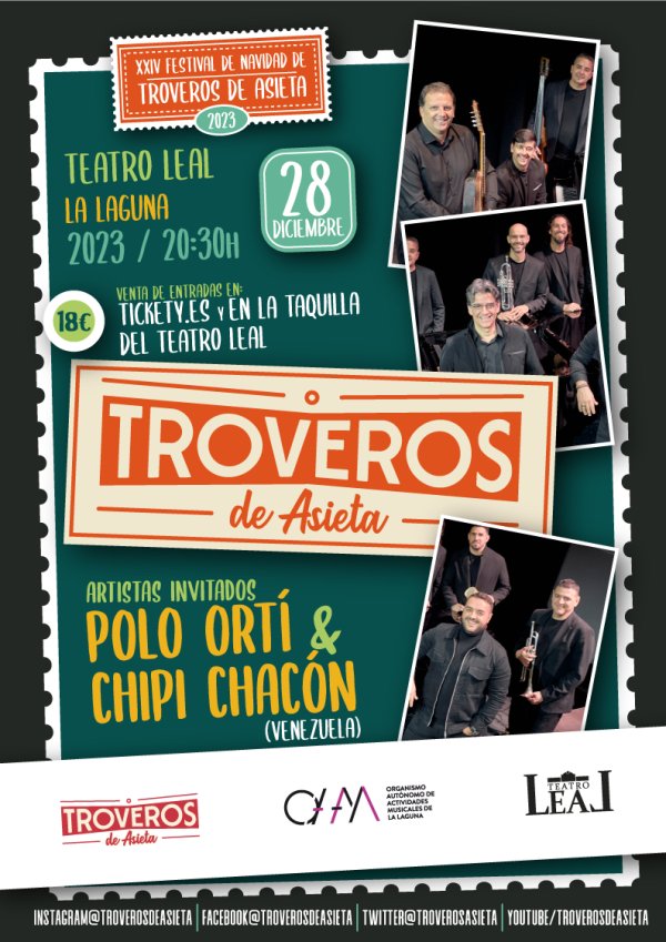En el Festival se entrelazan de forma magistral, la contundencia rítmica y sonera del Grupo, con las armonías y el virtuosismo de estos dos grandes talentos. Troveros de Asieta, actuará junto a Polo Ortí y Chipi Chacón, pero también Chipi Chacón y Polo Ortí intervendrán conjuntamente por primera vez con ocasión del mismo. El repertorio se desarrolla bajo distintos formatos y ambientes, sorprendiendo al público asistente en una puesta en escena versátil, para culminar con un derroche de percusión que le da la mano al piano y a las trompetas, dando rienda suelta a la improvisación.
